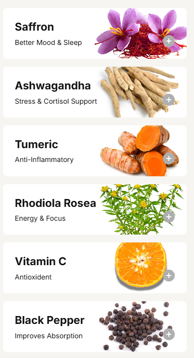 Unlike many brands that use weak extracts or proprietary blends, we use premium saffron standardized for safranal and crocins, combined with 9 other clinically backed ingredients including KSM-66 ashwagandha, magnesium, and turmeric. Plus rigorous third-party testing. No fillers, no fluff, just real results.